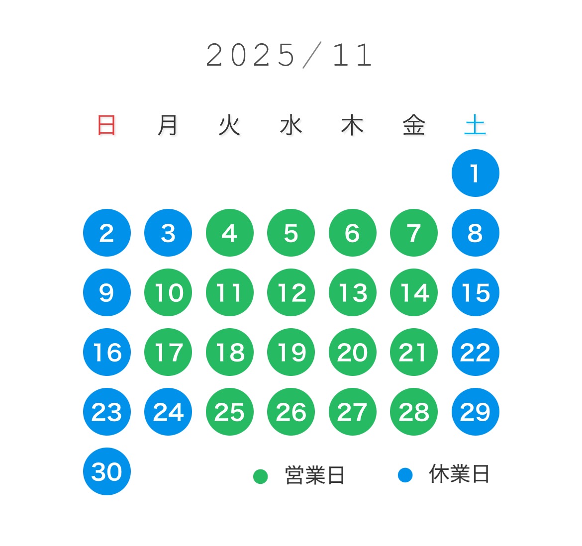 2025年11月の営業カレンダーをご案内いたします。